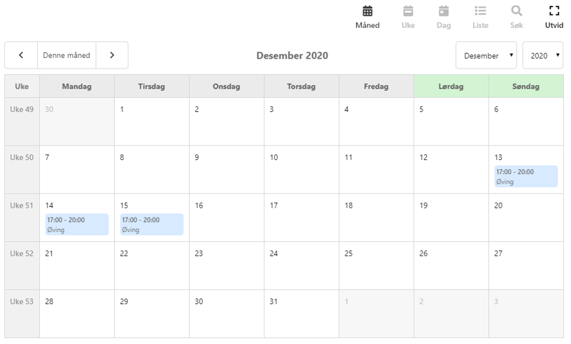 - Utvid kalender til fullskjerm